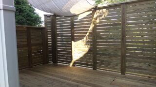 1階ウッドデッキ シェードのついた、町田市のウッドデッキ・・背の高いウッドフェンスと外壁で日差しを避ける 昨夏の暑い日差しを思い出してしまう。エアコンつけてもまだ暑かった。近年の住宅は下屋が短いので陽射しが強く室温をあげてしまうのですが、夏の太陽光を遮れば、ある程度室温上昇が防げそう。はっきりとした、強い陽射しにシェードが多少有効な目に見える写... 2026.03.08 ウッドデッキ工事(施工)ウッドフェンス(木製フェンス)木製フェンス、ウッドフェンス町田市自社職人1階ウッドデッキ