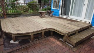 1階ウッドデッキ 四角をまあるく人の目にもやさしげなウッドデッキ施工中と完成・・藤沢市で 防草シートを敷き、三浦、山下、増川社員のリアルな仕事が動いている角が丸いと、鋭いエッジがなくなってソフトなイメージがある。実際、歩く場所で知らず知らず当たることもありそうなのでこういうスタイルも好ましい高耐久処理の天然国産材のLBウッド。耐... 2026.01.27 木製小物藤沢市1階ウッドデッキ