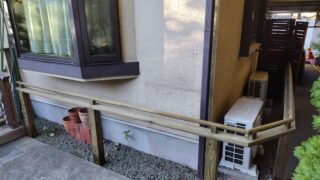 1階ウッドデッキ 目黒区、18年してメンテナンスと、庭歩行用手摺りをウッドデッキから玄関まで 18年前、ちょうどLBウッドの工程・加工時間・処理材の前加工を研究していたころの”あと一息LBウッド”で施工のウッドデッキ。お客様は、(この木の感触が好き、ずーっと変わらずにいて欲しい)と。いつもやるように、洗浄とDOT散布をするつもりで伺... 2025.12.14 ウッドデッキ修理・メンテナンス木製フェンス、ウッドフェンス1階ウッドデッキ