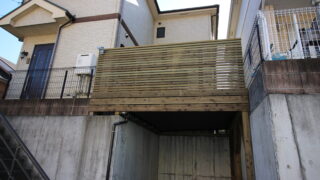 屋根がついた車庫上ウッドデッキ(ガレージデッキ)にして空間拡張・・・横浜市瀬谷区のLBウッドで作る、車庫の上の庭(人工地盤化か?)